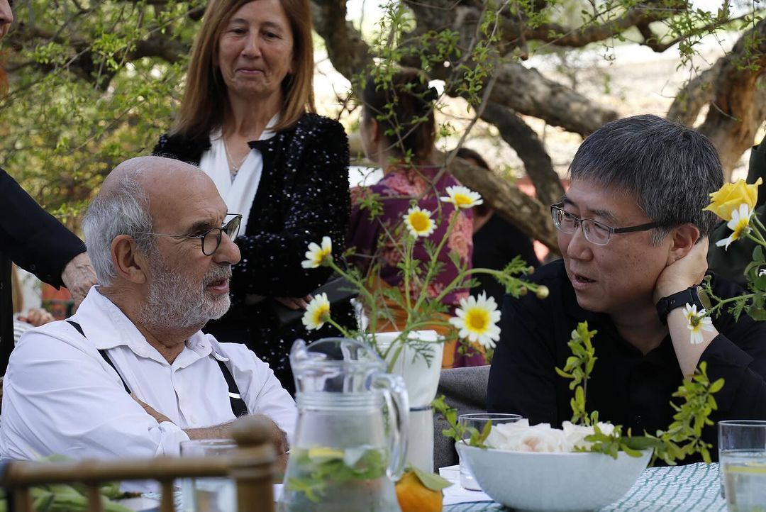 Creé un menú inspirado en los eventos y temas discutidos durante el foro, utilizando ingredientes de mi huerto cocinados a fuego de leña en mi cocina al aire libre. Fue un hermoso día de primavera, y todos se relajaron en el jardín mientras los anfitriones y ponentes invitados, incluyendo al reconocido director Stephen Frears, Tim Rice, Carolyn Michelle y el economista Ha-Joon Chang, leyeron un poema propio o de otro autor en su versión original.